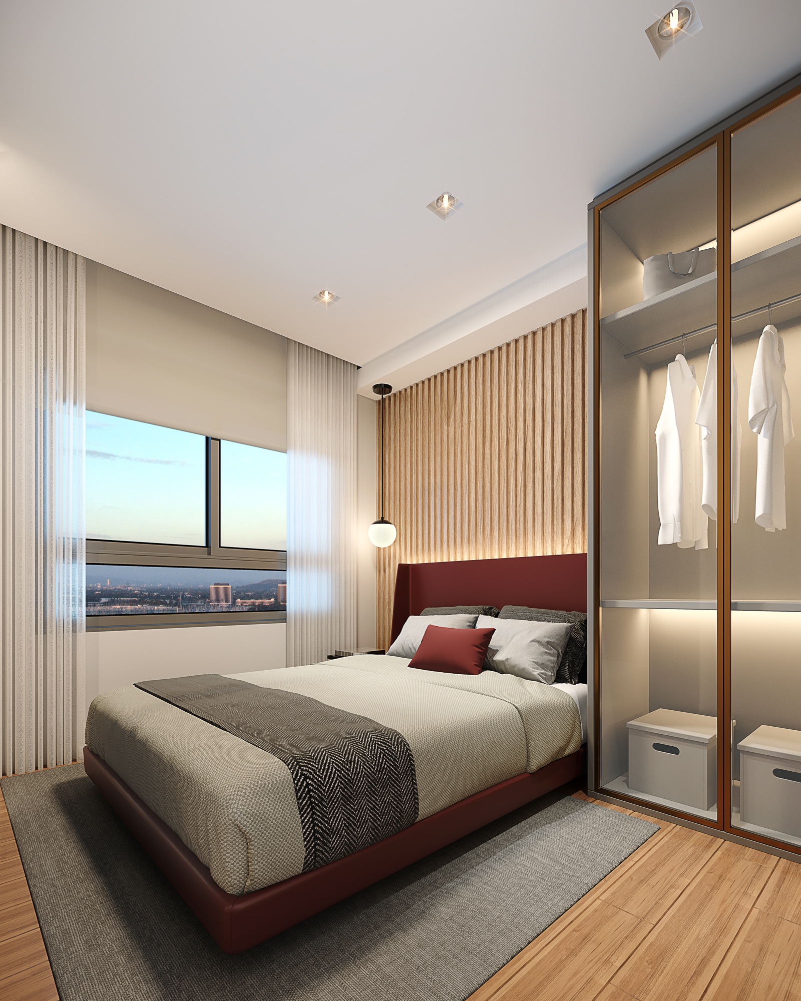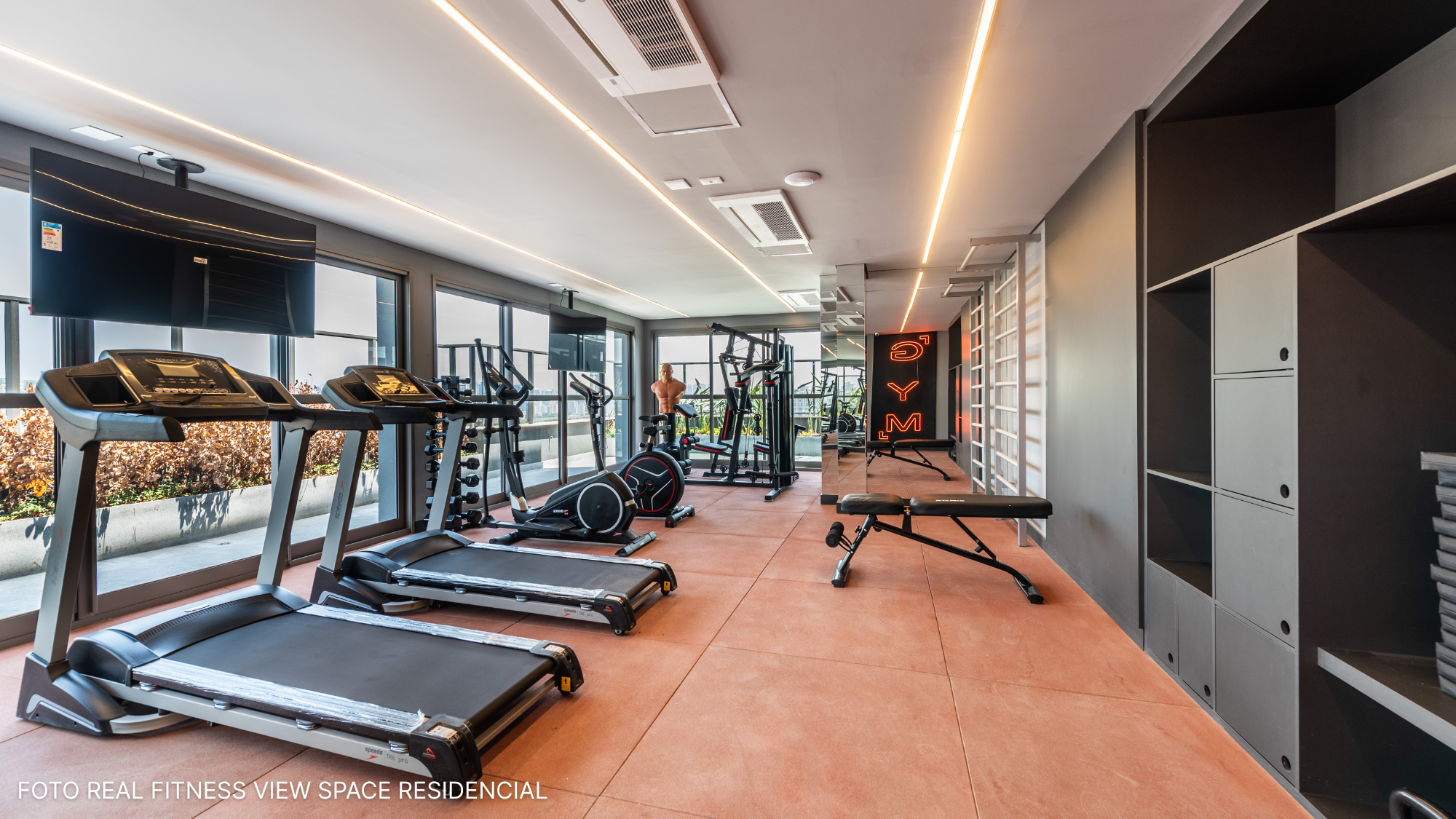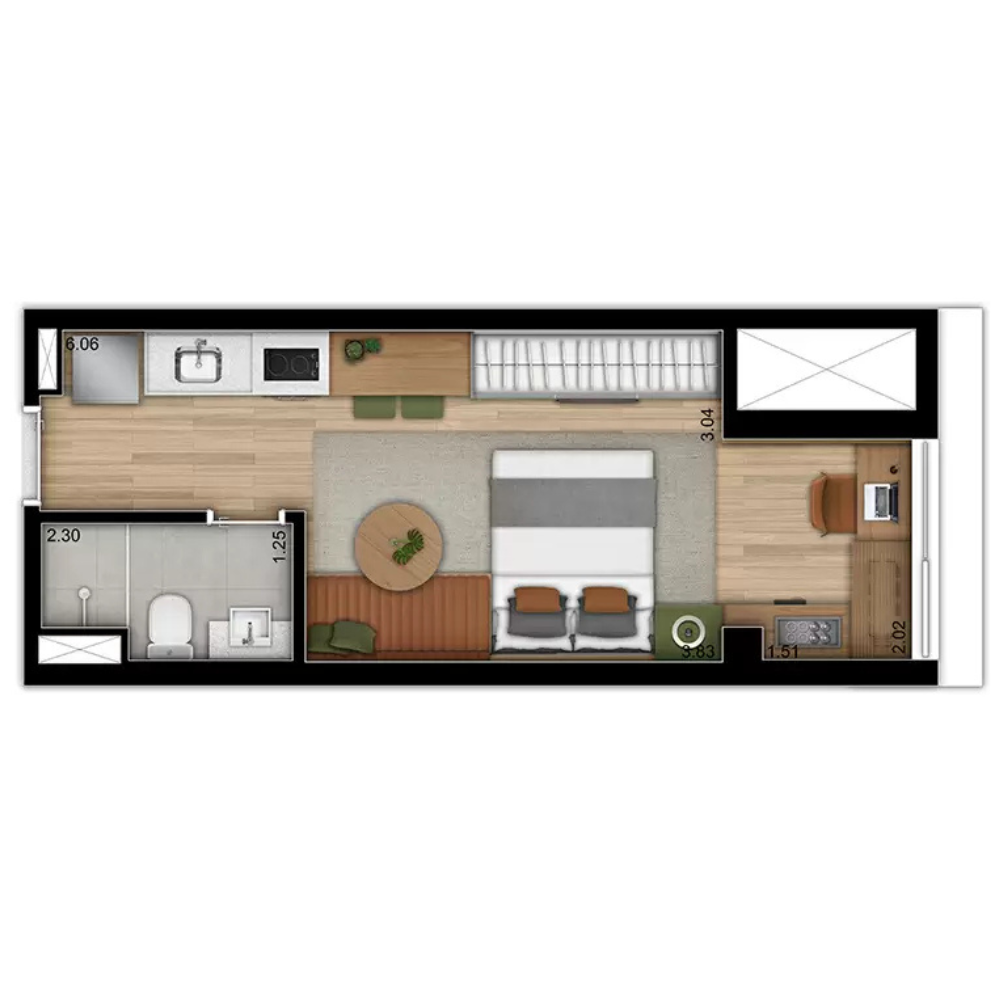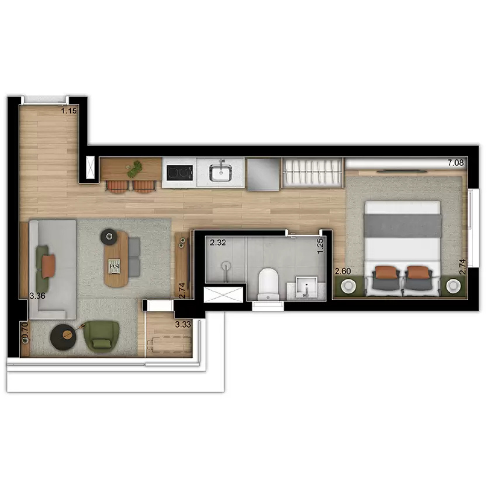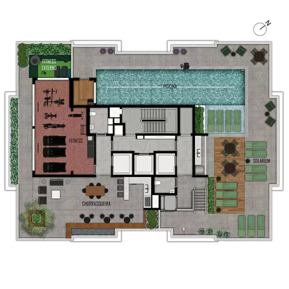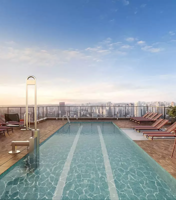 (1) Apenas para apartamentos de 1 e 2 dormitórios, do 8ª ao 16ª pavimentos. (2) O apartamento será entregue com dreno e carga para receber ar-condicionado tipo split. A infraestrutura (rede frigorífica e alimentação elétrica) será oferecida aos proprietários por meio de kits. (3) Os apartamentos serão entregues com toda a infraestrutura para receber sistema de automação, no entanto, a aquisição e a instalação desses equipamentos são opcionais, oferecidas aos proprietários por meio de kits.