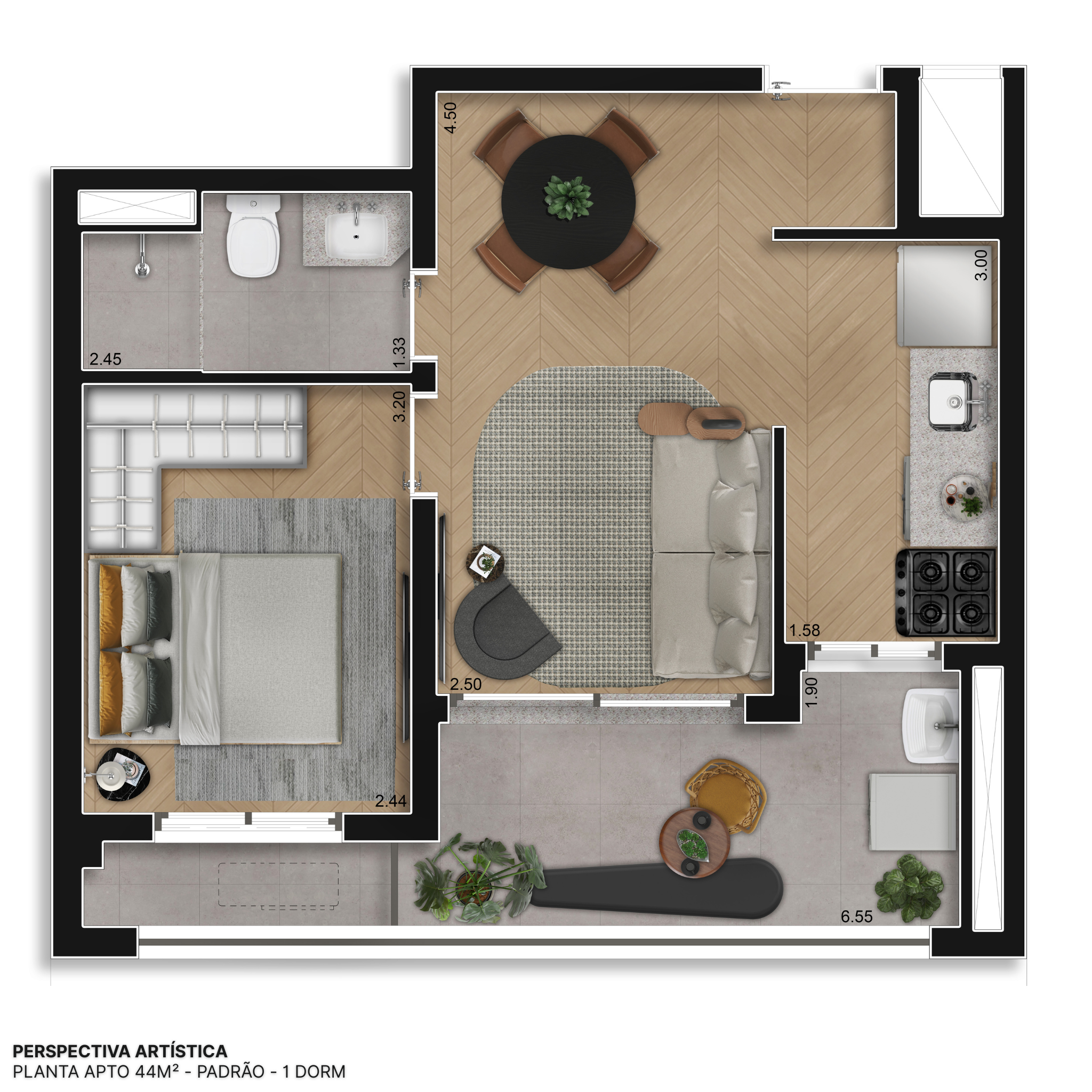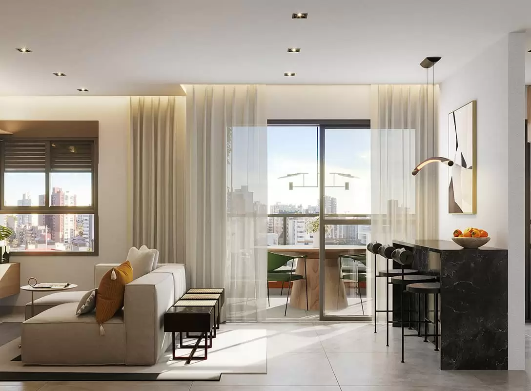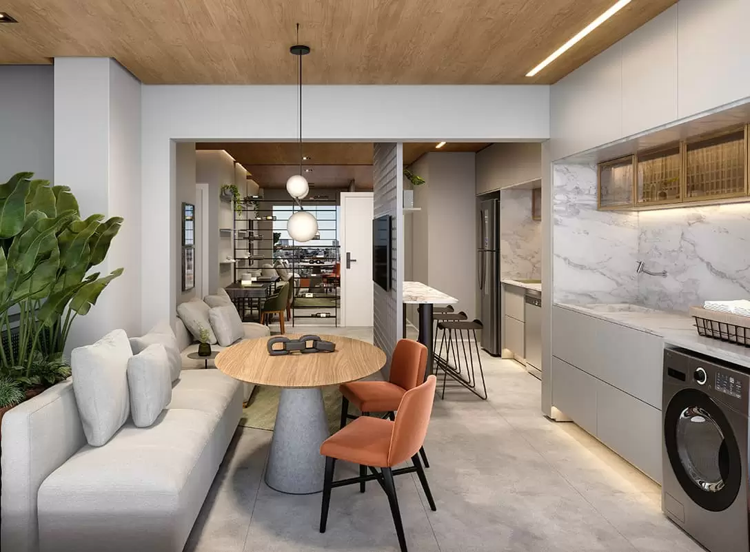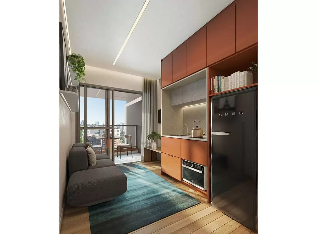 Seja nos studios ou nos apartamentos de 1 e 2 dormitórios, você encontrará um ambiente aconchegante, ambientes iluminados e bem planejados, garantindo integração, iluminação, amplitude e muito mais.