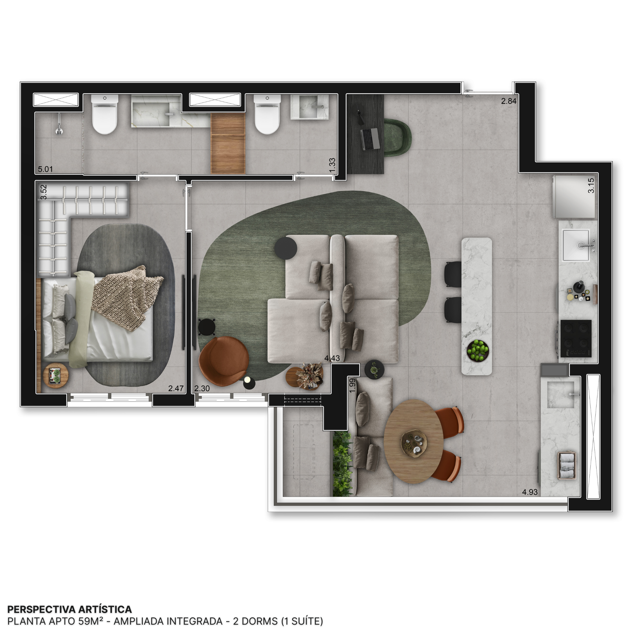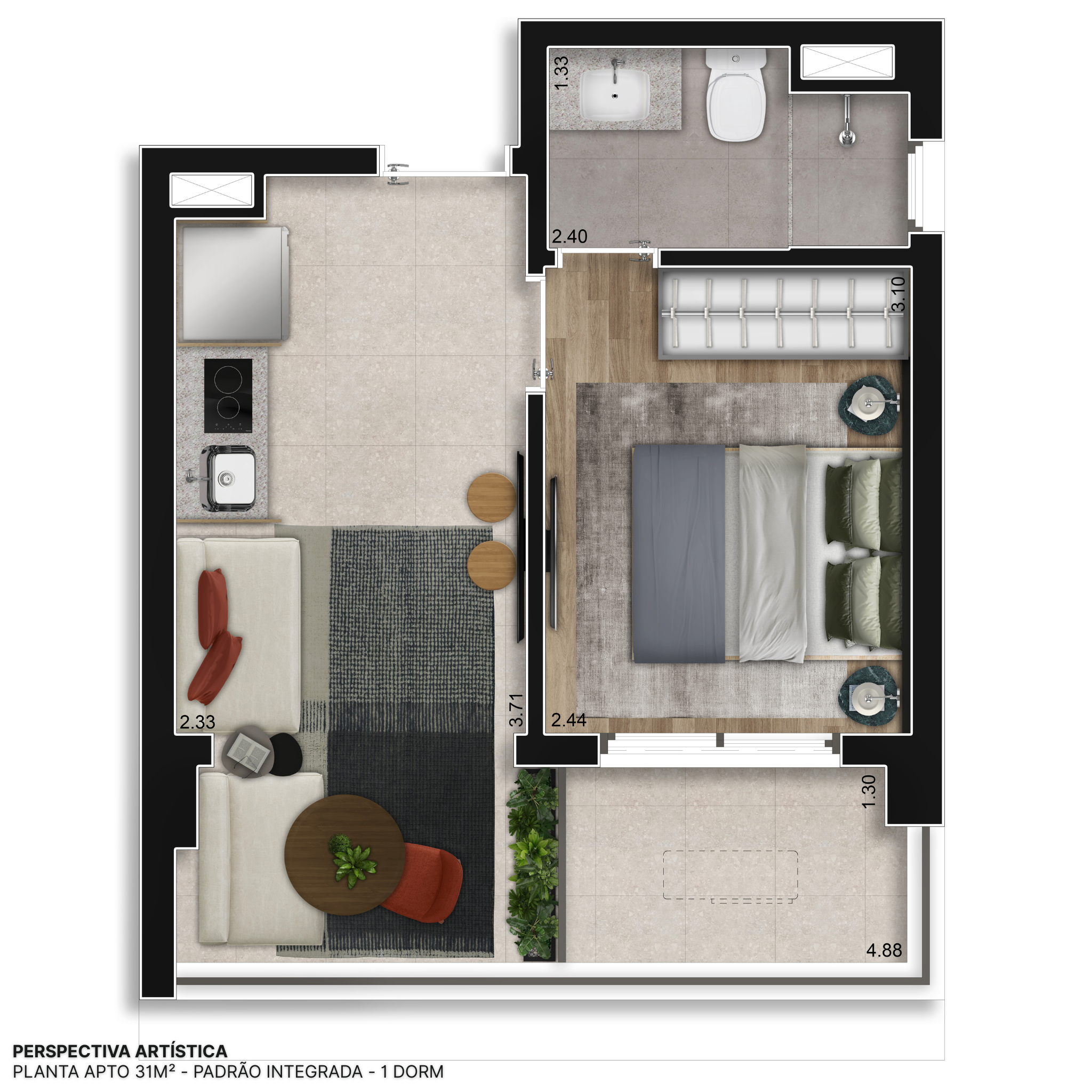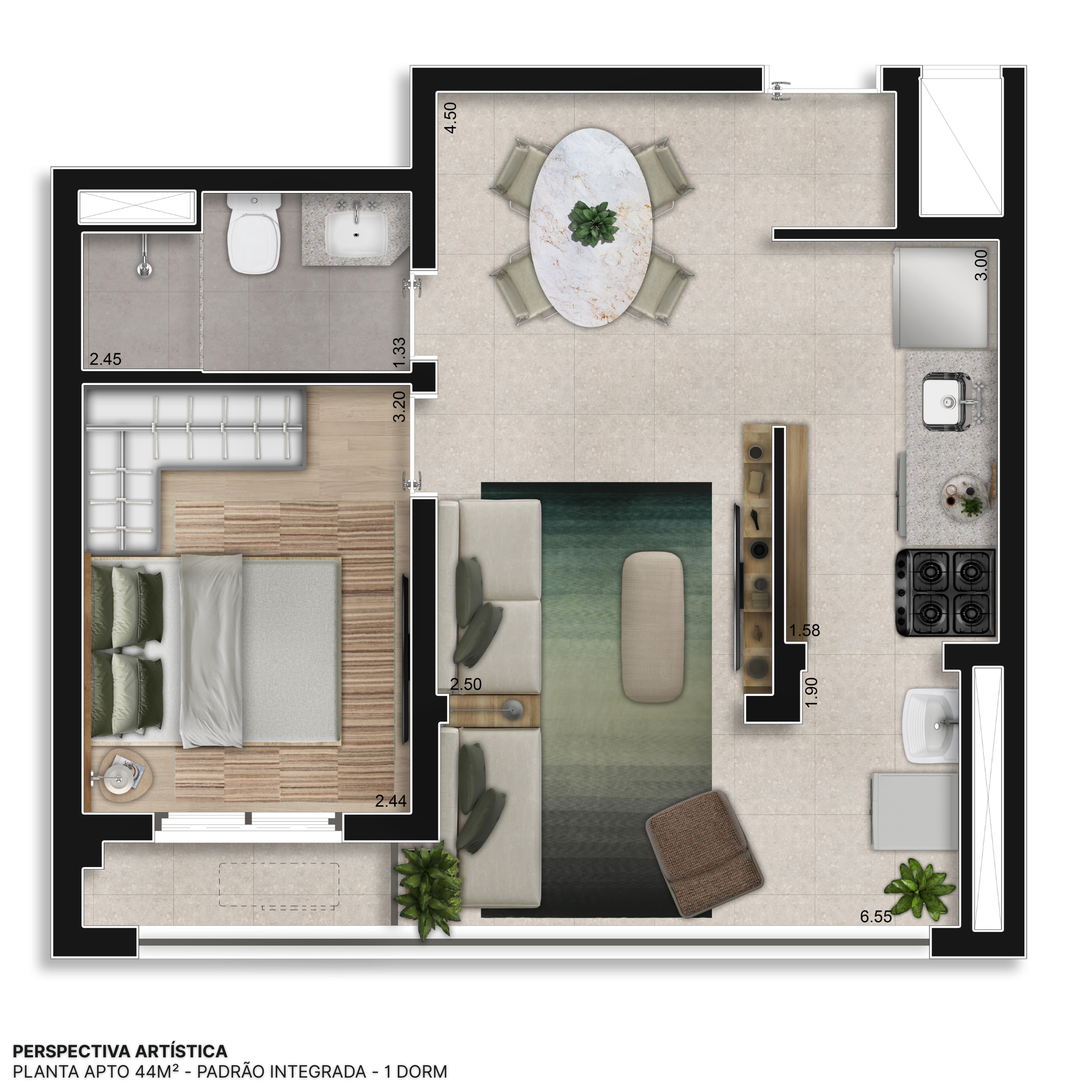 Seja nos studios ou nos apartamentos de 1 e 2 dormitórios, você encontrará um ambiente aconchegante, ambientes iluminados e bem planejados, garantindo integração, iluminação, amplitude e muito mais.