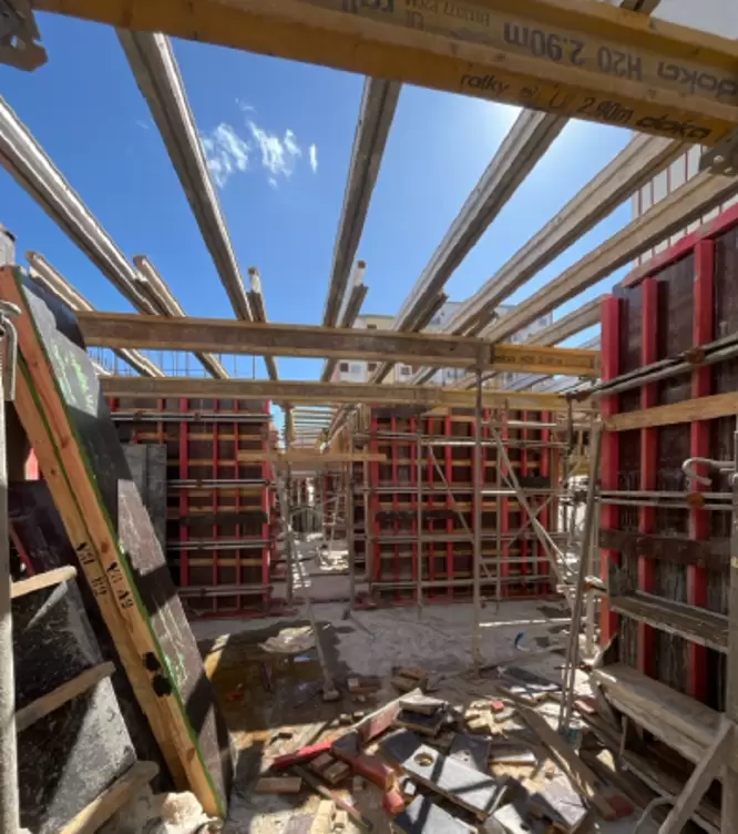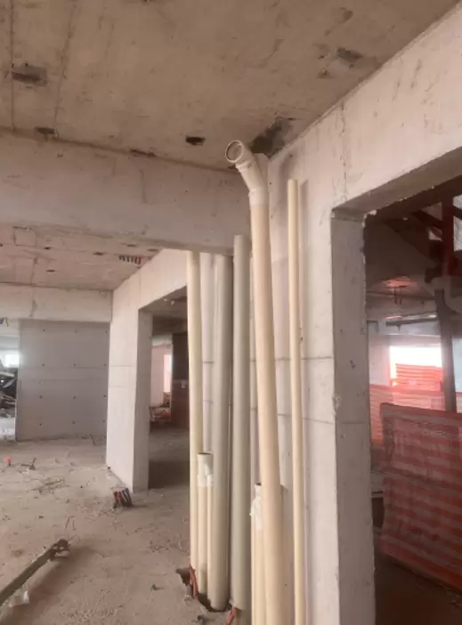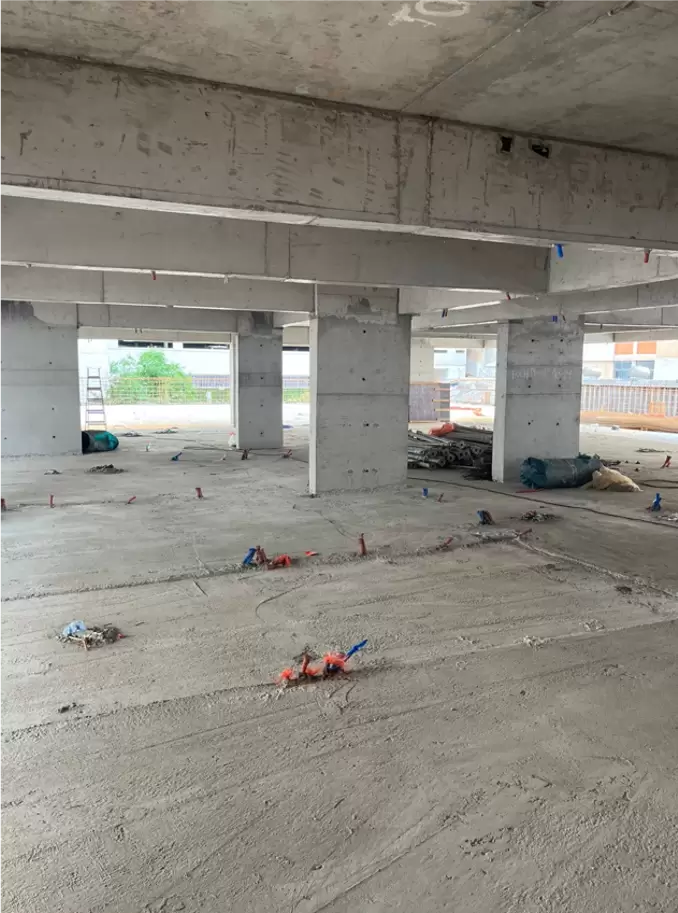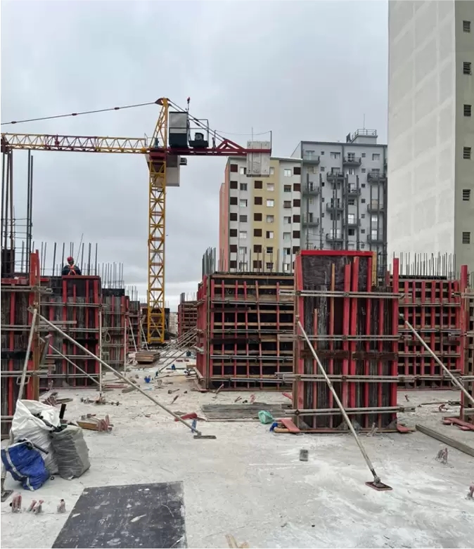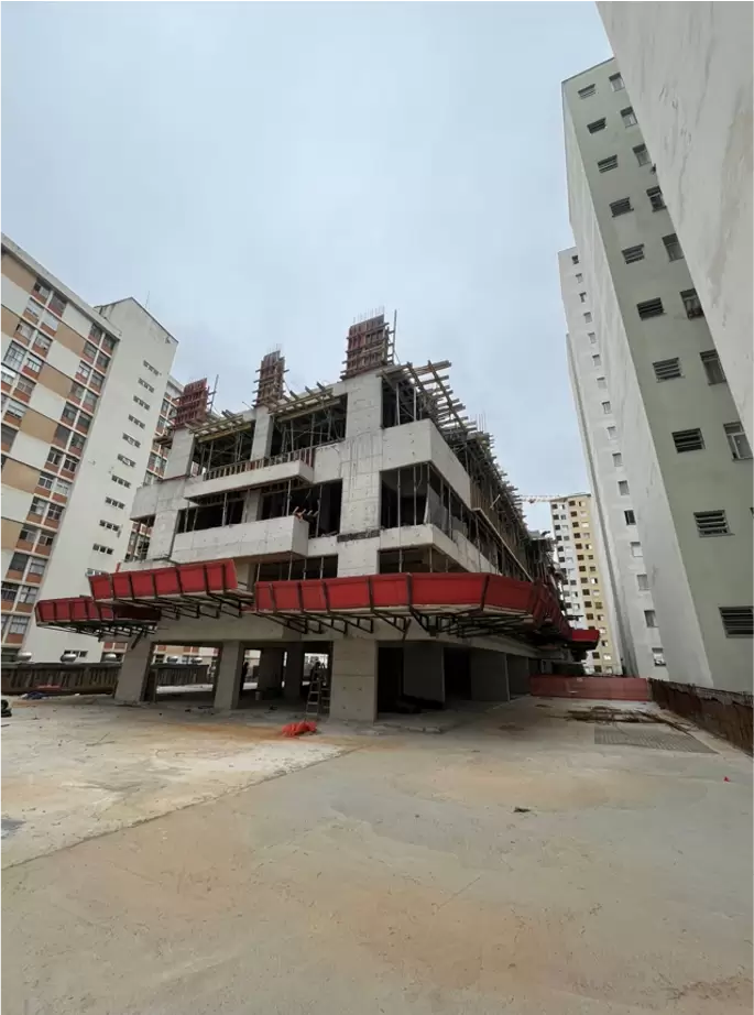 Concretagem do 7º Pav, Finalizando concretagem de periferia, Aterro de cortinas, Concretagem do 6º Pav, Início da alvenaria da periferia, Início da drenagem do subsolo, Instalação de piso a piso e SLQA.