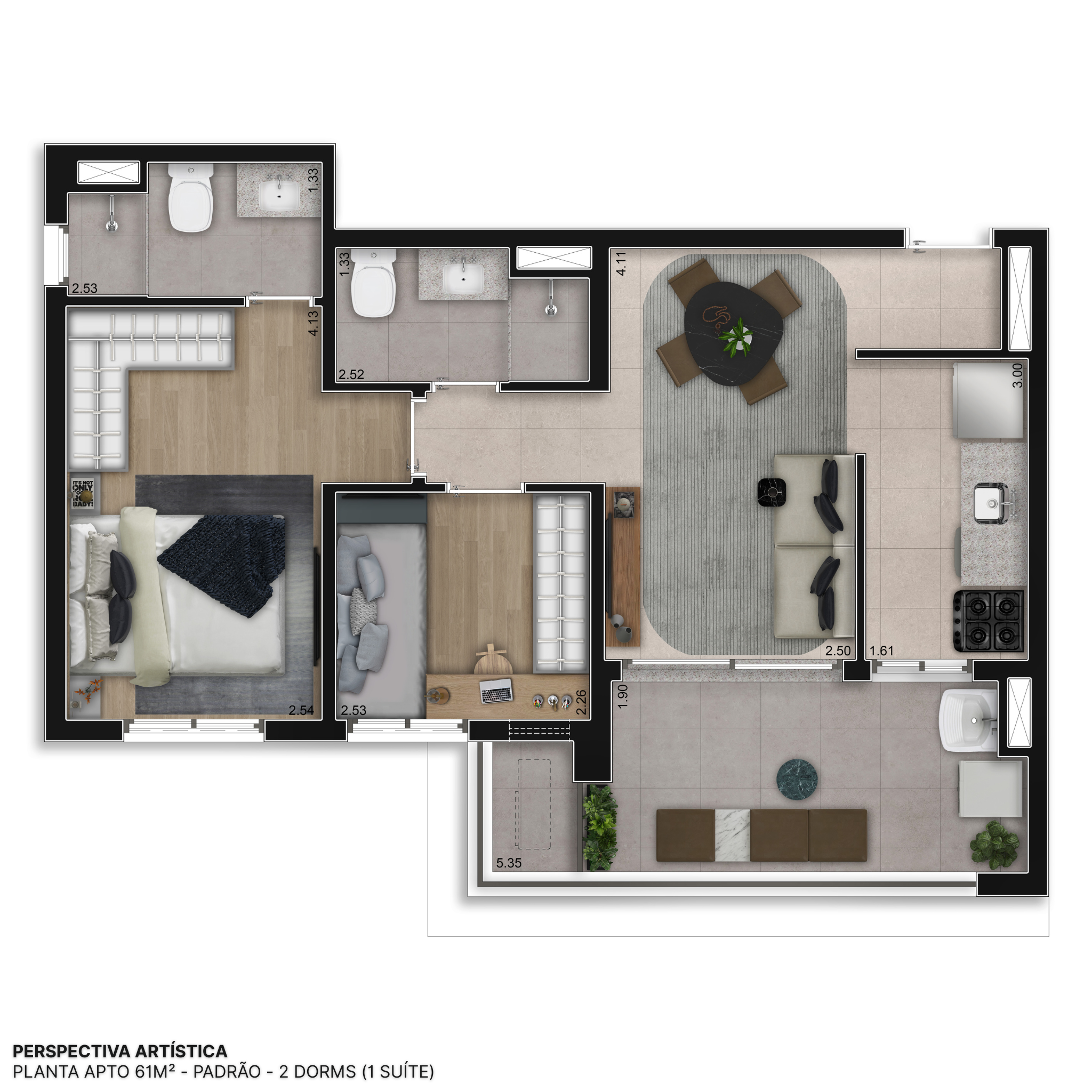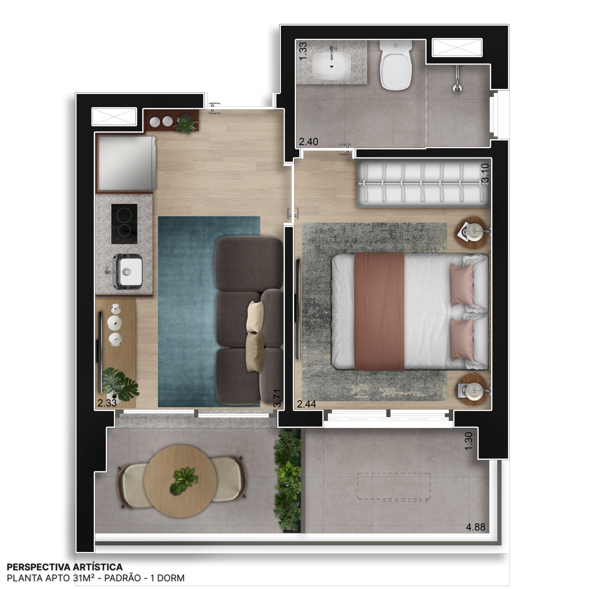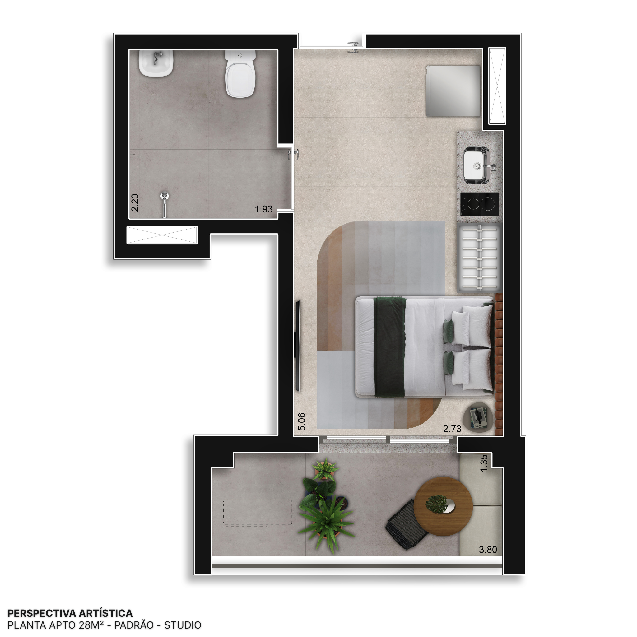 Em opções de 28 a 61m², com 2 e 1 dormitórios e unidades studio com a praticidade que o seu dia-a-dia precisa!