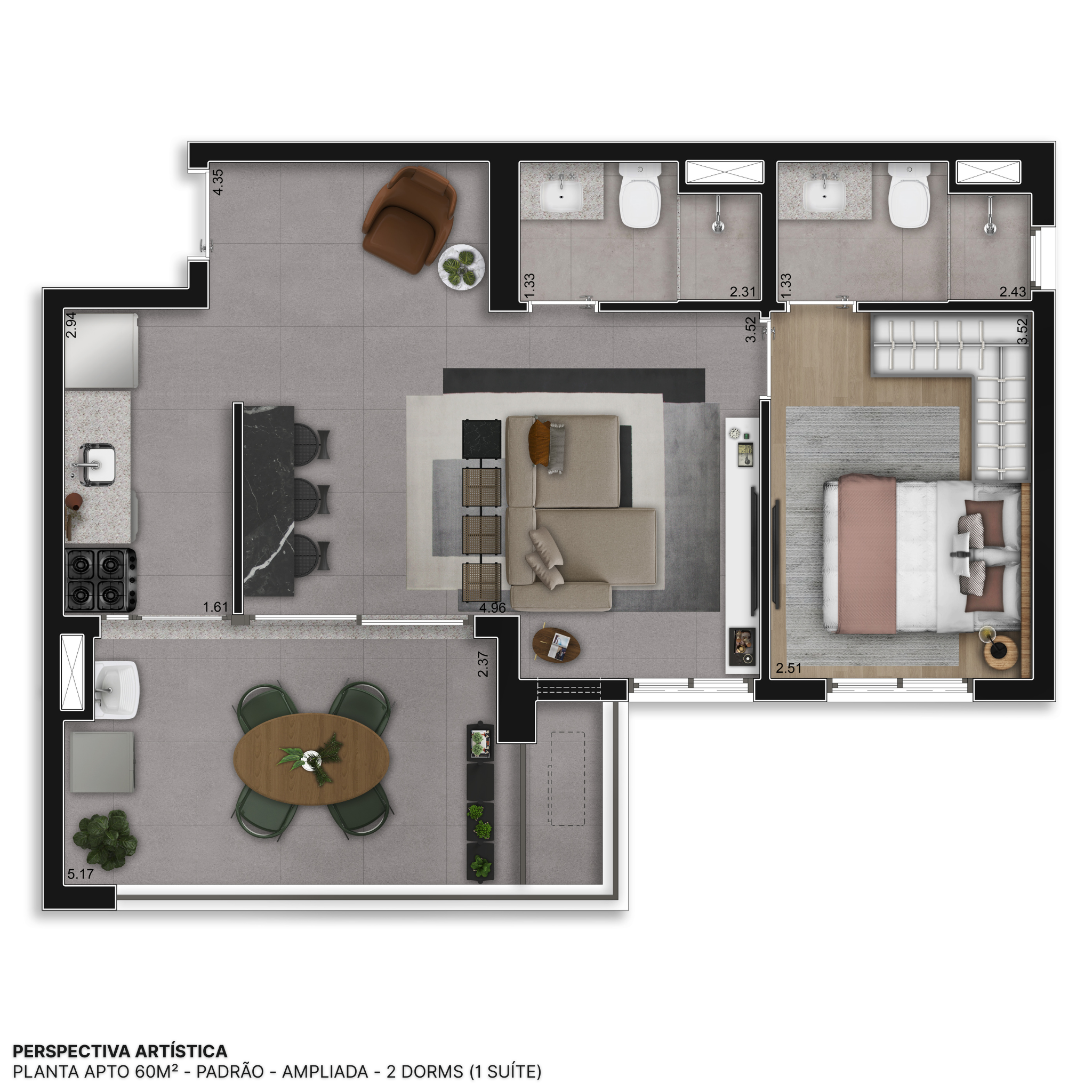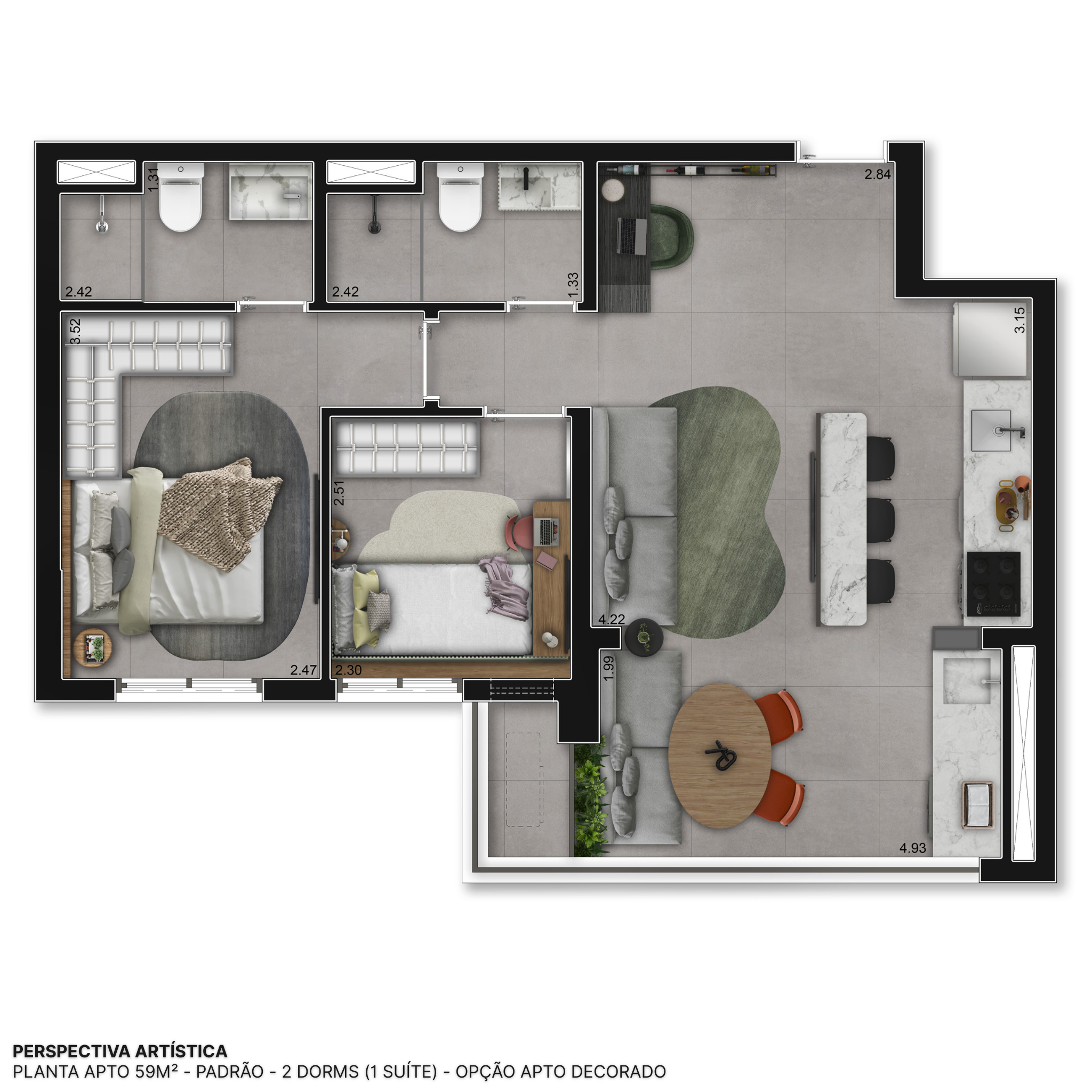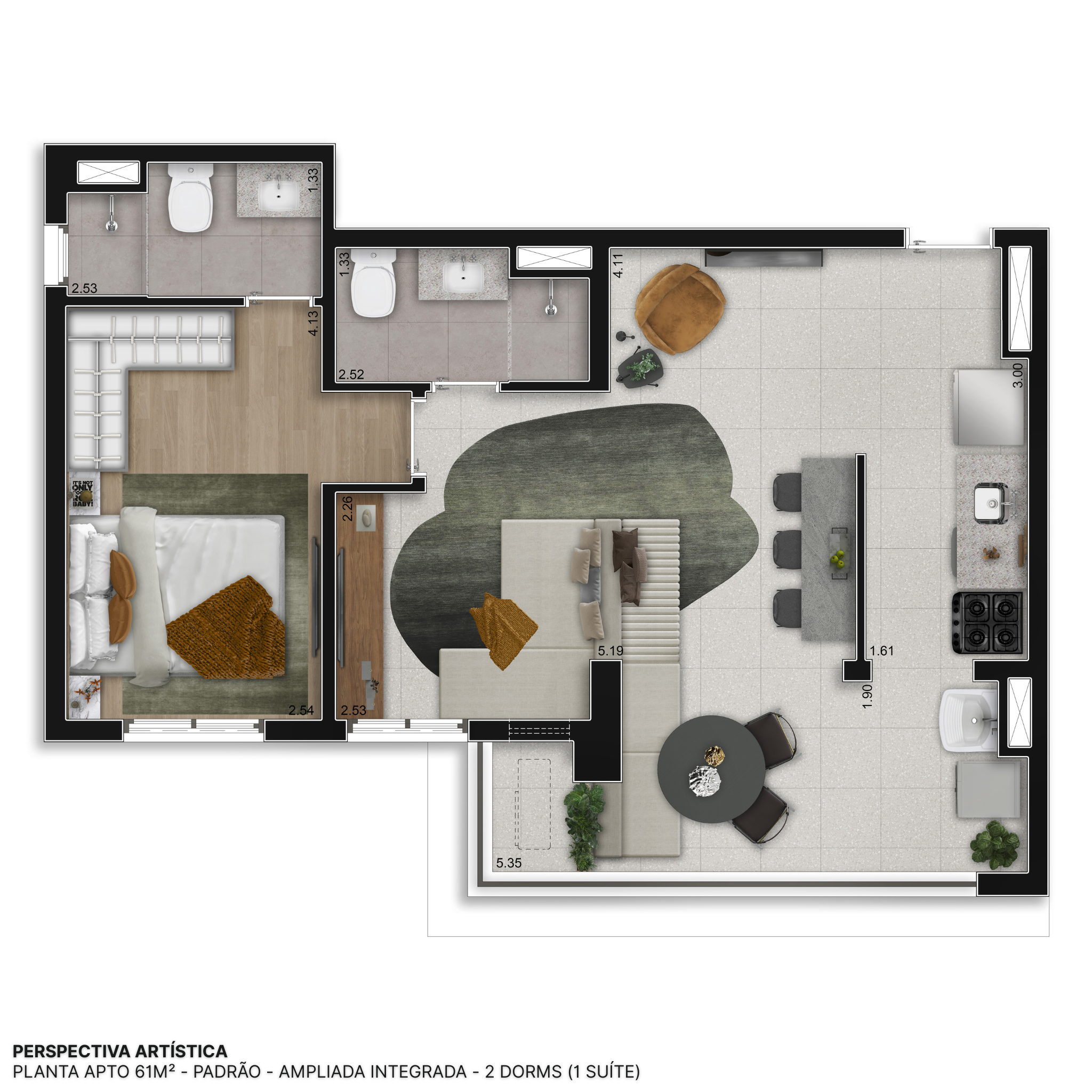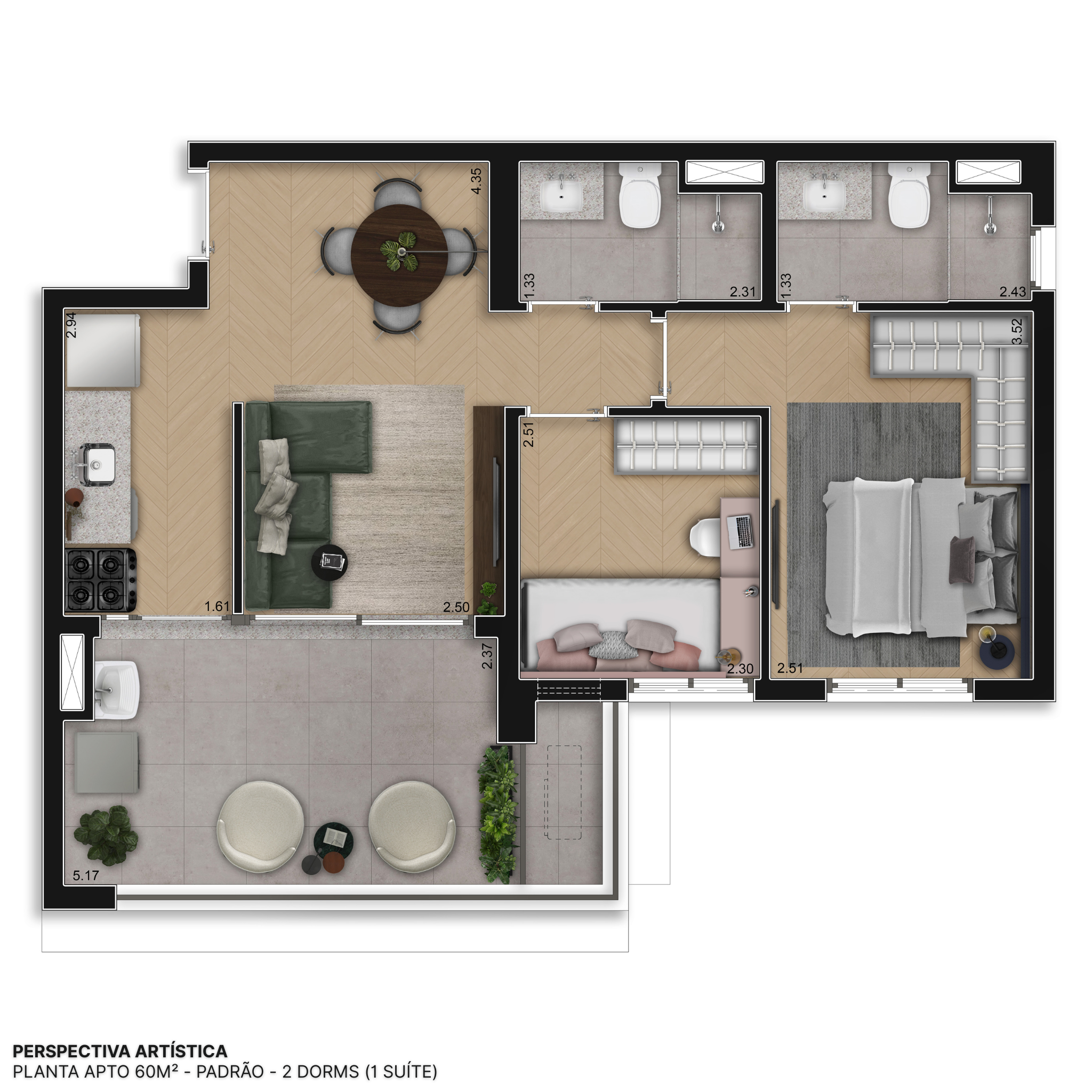Em opções de 28 a 61m², com 2 e 1 dormitórios e unidades studio com a praticidade que o seu dia-a-dia precisa!